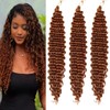 jiefeng Braiding Hair Brown 22 Inch 3 Bundles Deep Wave Bulk Hair Extensions for Boho Braids Ocean Wave Crochet Hair Extensions