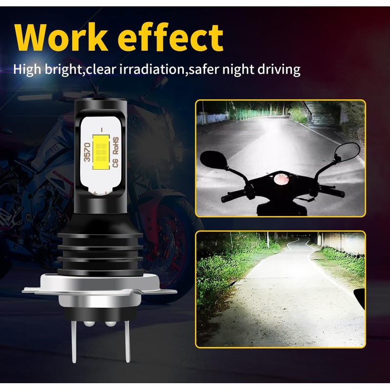 - 360 Degree Lighting:H7 motorcycle fog lamp bulbs There are no dark spots or shadowed areas,perfect performance in conditions of poor visibility due to rain, fog, dust or snow.360 degrees full angle light bring you an astounding emitted light effect.