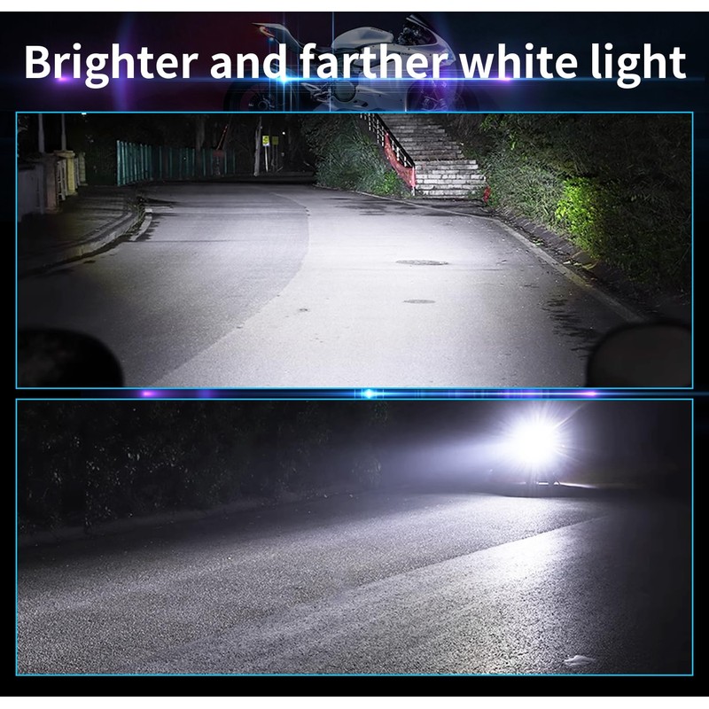 - Brighter and farther white light:Jienarso H7 Motorcycle fog light with 14,000lm ultra-high lumen output per group compared to halogen and 6500k cool white light, illuminates all the details on the roadway at night, making night driving more comfortable and safer.