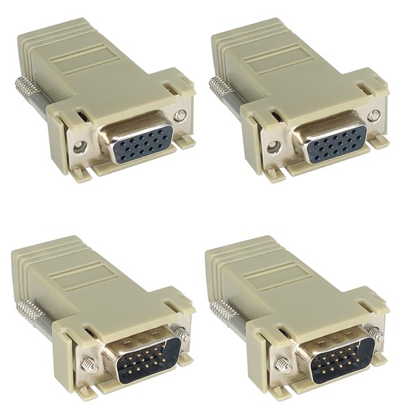 Jienk 4Pcs VGA Extender Over Ethernet Adapter, VGA Male/Female 15Pin 3Row to ...