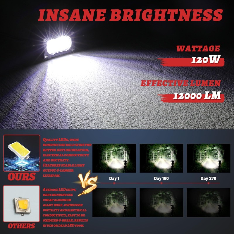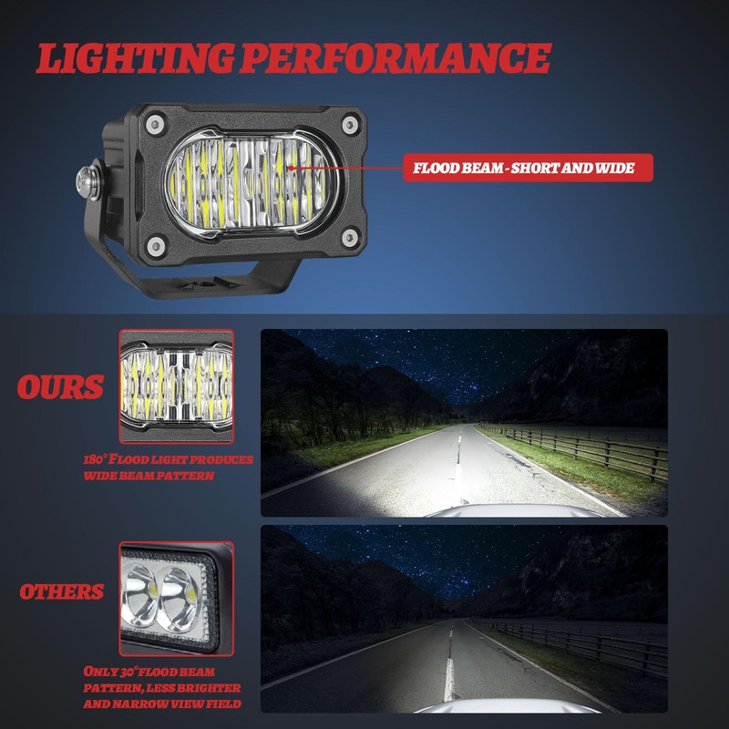 - UPGRADED FLOOD BEAM TYPE - Specially developed reflector and led chips for homogeneous illumination, an effective diffused flood light source to cover a wider range. Allows you to be as agile as a leopard at night, quickly discover obstacles and wild animals, and avoid accidents. It is your good partner for off-roading