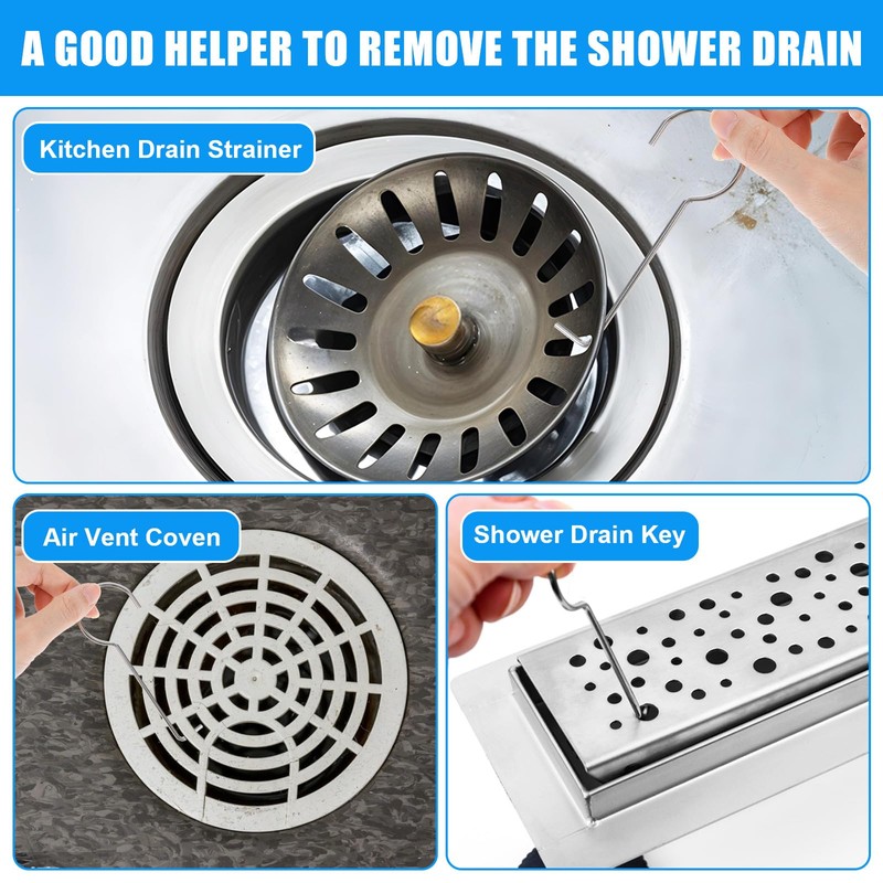 - 【Package Includes】You will receive 5 stainless steel drain hooks, enough for daily use. This abundant selection of tools ensures that you can effortlessly keep multiple drains clean. Remove shower drain grille effortlessly with our versatile shower drain tool and avoid the struggle with stuck or stubborn grids.