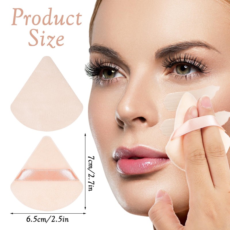 - Double-sided design: this cosmetic powder puff has a triangular and circular design. Use the round side to apply foundation to larger areas such as cheeks and forehead, and the triangular side for precise application around the eyes and contours. Say goodbye to uneven makeup!