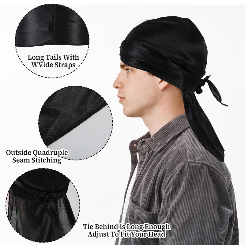 Silk Durag for Men, Satin Doo Rag for 360 540 720 Waves