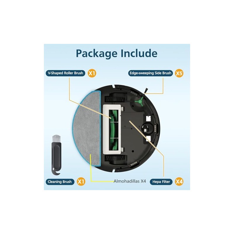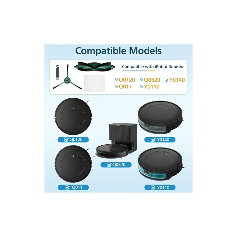 🌟 ⭐ JIEYOUTA Kit de Accesorios de Repuesto para aspiradoras robóticas compatibles con iRobot Roomba Essential Y0140/Q0120, etc. 1cepillo Rodillo,4HEPA,5cepillos Laterales,4Almohadillas,1cepillo Limpieza ⭐ 🌟