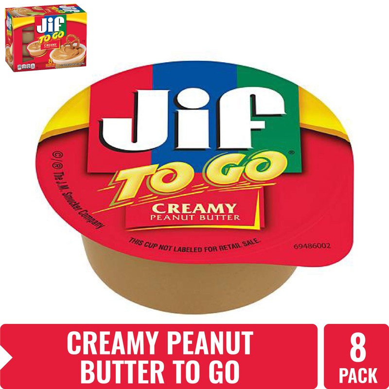 Jif To Go Creamy Peanut Butter, 8-1.5 Ounce Cups, 7g (7% DV) of Protein per Serving, Smooth and Creamy Texture, Snack Size Packs