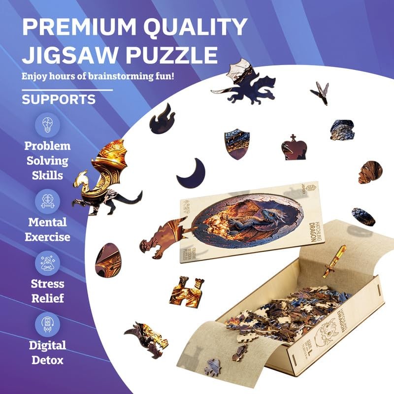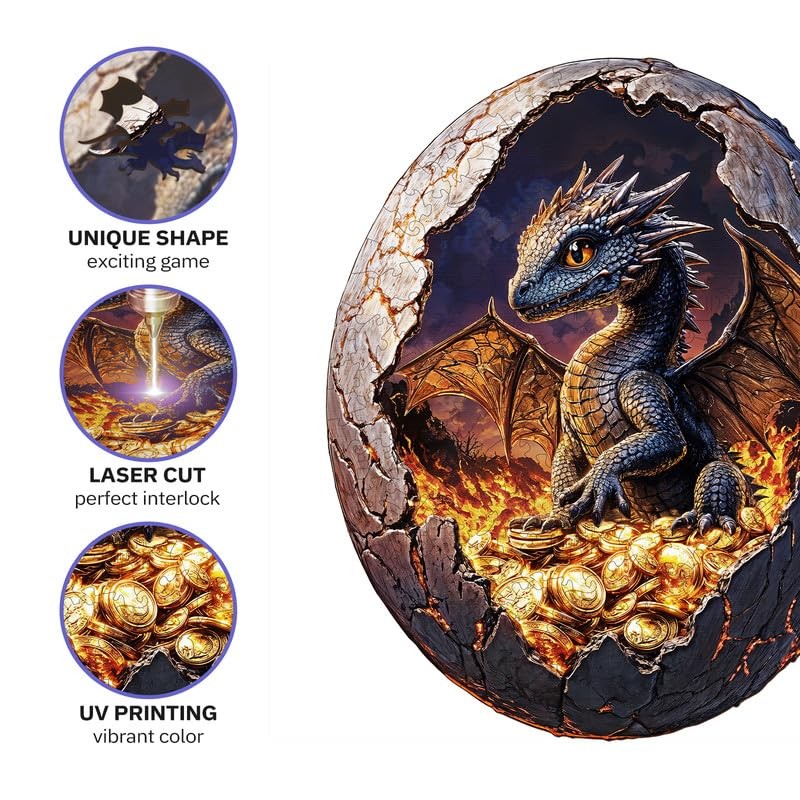 Jigfoxy Wooden Puzzle for Adults, Hatchling Dragon Wooden Jigsaw Puzzles for Adults, Unique Animal Shape Wood Cut Puzzles for Family Friend Puzzle Lovers(L-13.5 * 11.2in-257pcs)