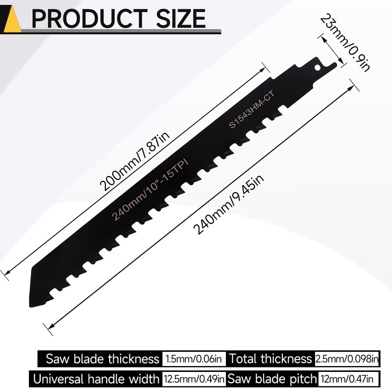 Jigsaw Blade 240 mm, Carbide Reciprocating Saw Blade for Wood, Concrete, Aerated Concrete, Brick Saw, Jigsaw Compatible with Bosch, Dewalt, Makita, Durable & Precise