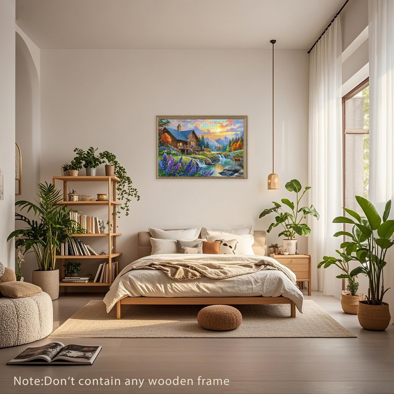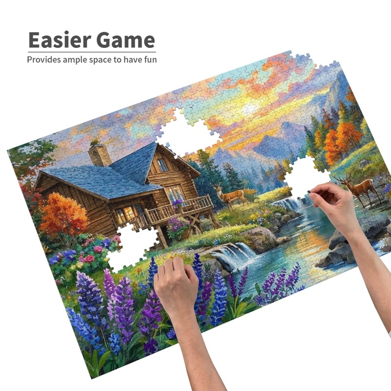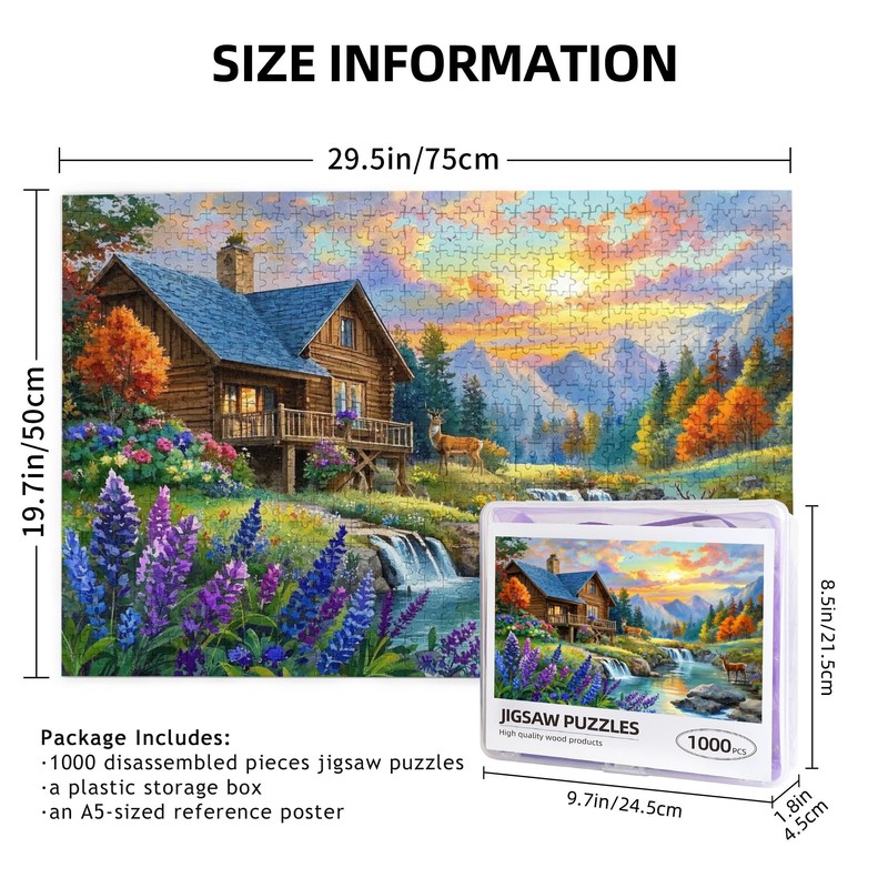 Jigsaw Puzzle for Adults, 1000 Piece Stream Wood House Themed, Finished Size 29.5"x19.7", Back Zoning Design,Wall Decoration Family Game Night Activity