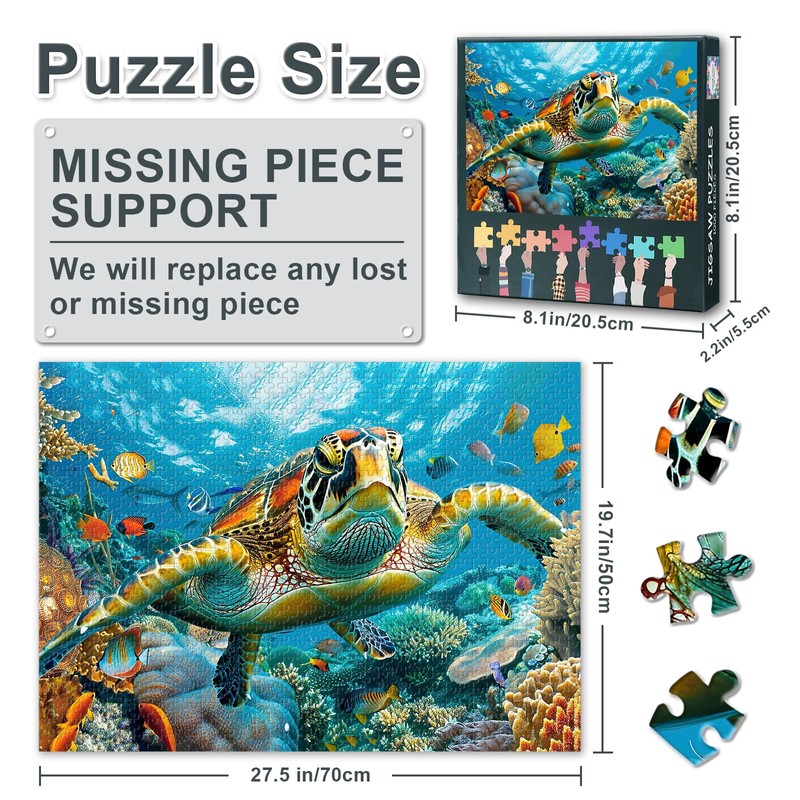 Jigsaw Puzzles 1000 Pieces for Adults Sea Turtle Puzzles for Adults Sea World 1000 Piece Puzzle for Adult Marine Life Adult Puzzles Games - 27.5 x 19.7 Inch