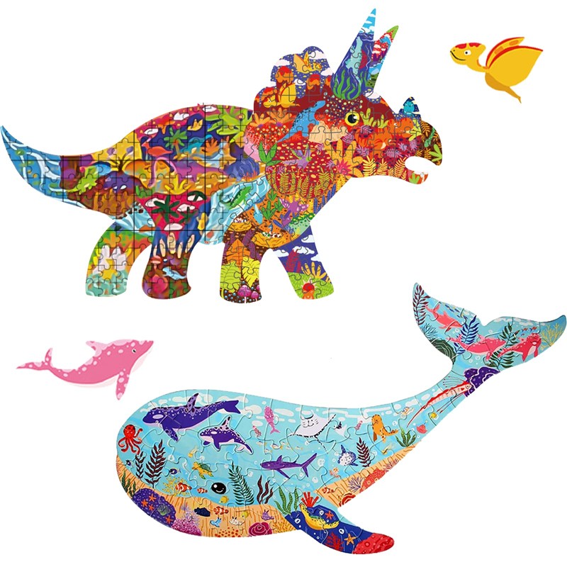 - 【A Puzzle Set with Educational Significance】NIDEZON Kids puzzle set contains cute whale and dinosaur, Lead to a wonderful lesson on animals habitat loss, and endangered species.