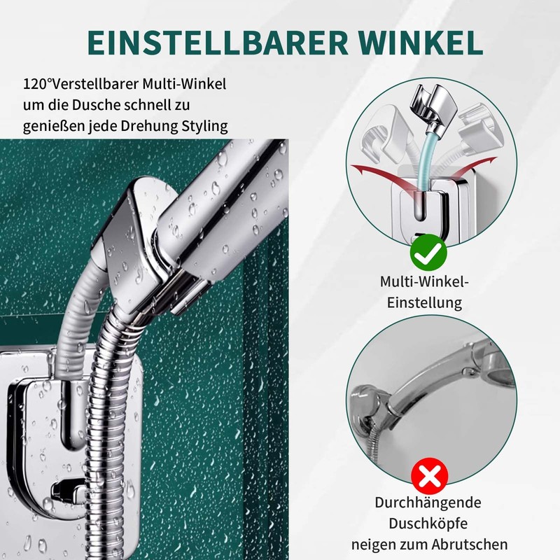 - Flexible Winkelverstellung f1r maximalen Komfort C Die Halterung ist mit einem verstellbaren Kopf ausgestattet, der eine Anpassung des Duschkopfwinkels erm?glicht. So k?nnen Sie den Wasserstrahl optimal einstellen und ein angenehmes Duscherlebnis genie?en.