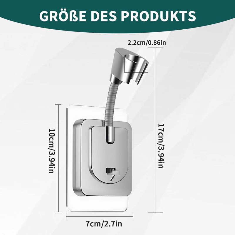 - Universelle Passform f1r g?ngige Handbrausen C Diese Duschkopfhalterung ist kompatibel mit den meisten handels1blichen Handbrausen und eignet sich perfekt f1r jede Art von Badezimmer. Ideal f1r Familien, G?ste und alle, die eine flexible Halterung ben?tigen.