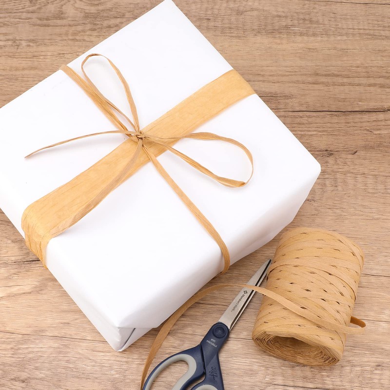 - Raffia ribbon natural multipurpose: Raffia natural paper ribbons are ideal for bundling and securing gift boxes, bouquets, plants or decorative glasses and is an indispensable helper when preparing birthday gifts, Christmas gifts and much more.