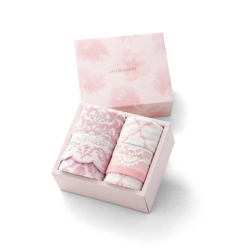 JILL STUART 58-3219200 Bloom Ornament, Towel Gift, 1 Wash Towel, 1 Face Towel, 1 Gift, Pink, Boxed, Scala