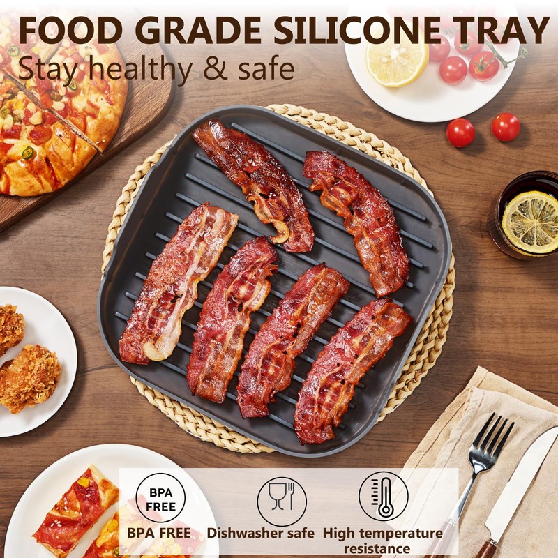 - Healthy Cooking: Designed with deep grooves can keep food up and drain away fat and moisture from the bacon, leaving you with a thin and healthy breakfast. Made from premium food grade silicone will preserve the flavor of the bacon