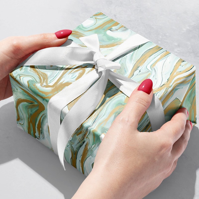 Jillson Roberts Bulk Gift Wrapping Paper, Marbleized Mint, 1/2 Ream 417 feet x 30 inches
