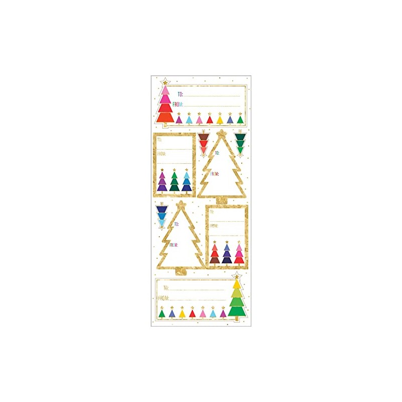 Jillson & Roberts Christmas to/from Gift Label Stickers with Foil Accents, Rainbow Trees (12 Sheets)