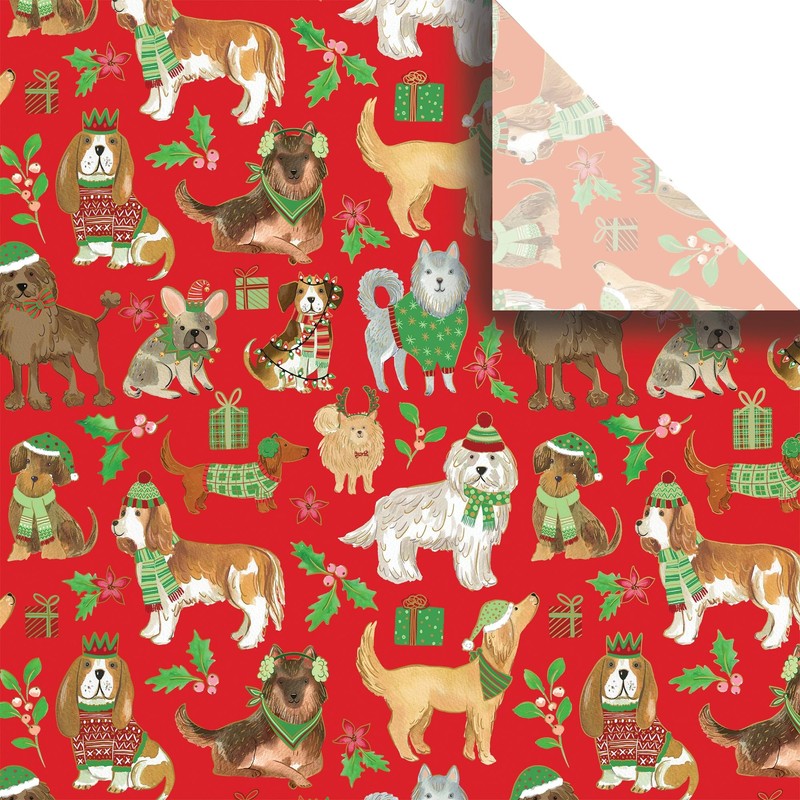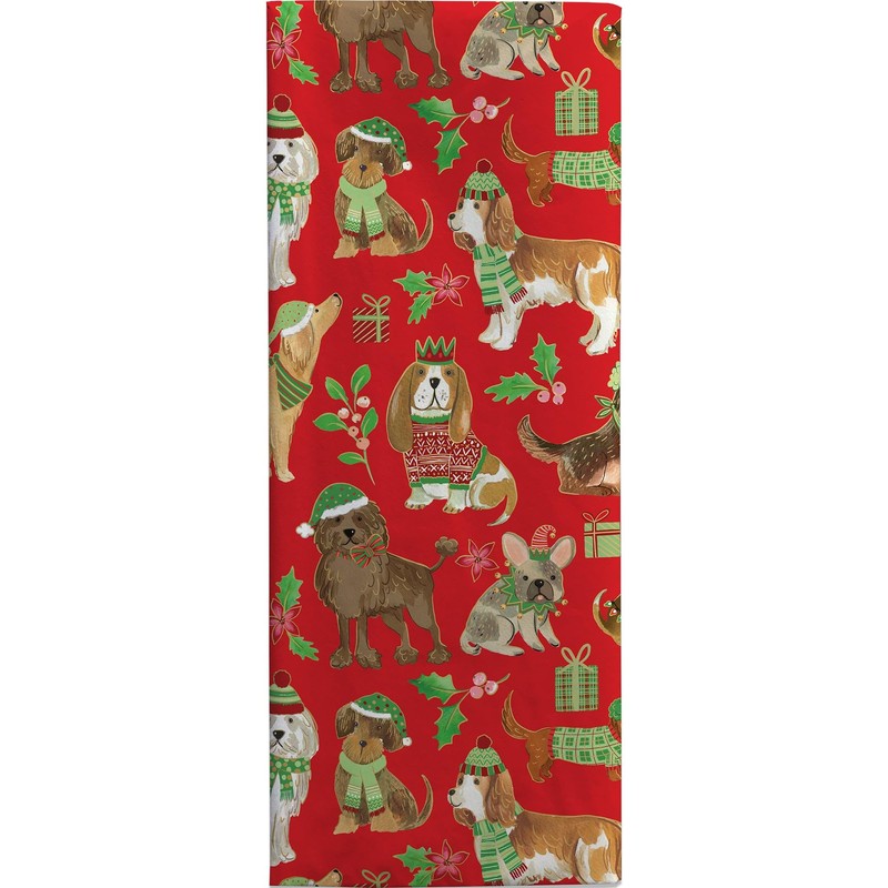 Jillson & Roberts Printed Gift Tissue 20" x 30", Canine Christmas (24 Folded Sheets)