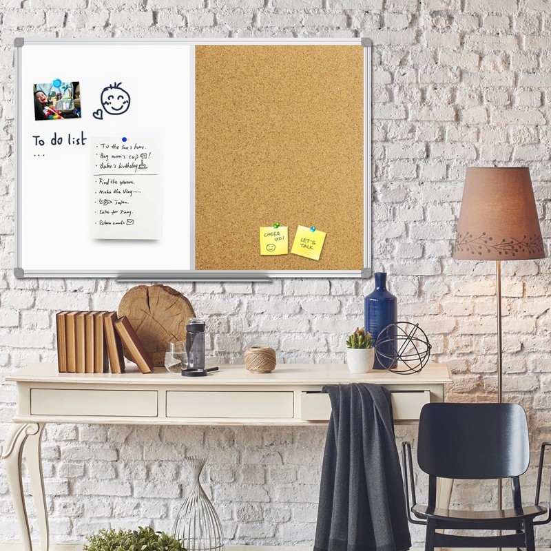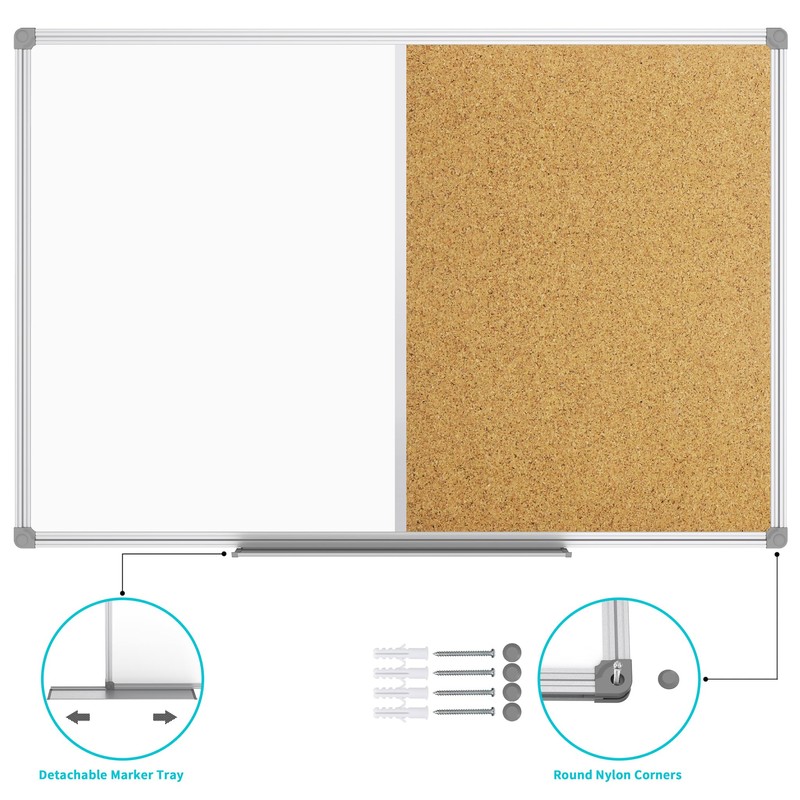- SMOOTH & ROBUST MAGNETIC PERFORMANCE: Combination board has two sides. Magnetic surface of the combination white board is easy for writing, drawing and learning. The cork surface of the combination board is easy to put notes, pages, documents, photos, graphs and cards on.