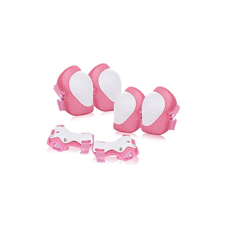 Jim's Store Kids Skate Pads 6pcs Adjustable Kids Knee Pads Elbow Pads Wrist Pads Protective Gear Set for Cycling Roller Skating Scooter (Pink)