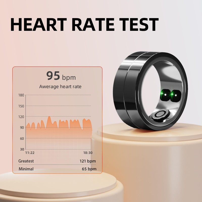 JIMIMAX Smart Ring, Health Tracking for Sleep, Steps, Heart Rate, Blood Oxygen, with Ring Loacation- Black 10#