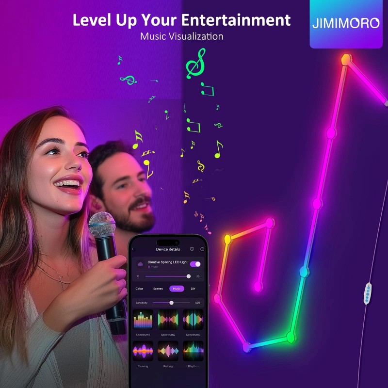 - Synchronize with music: The smart RGB wall lamp syncs with music by sensing sound. In microphone mode, the lights "jump" to the rhythm of the music, turning your room into a dance floor. It reacts to music, clapping, and talking, enhancing the overall experience.