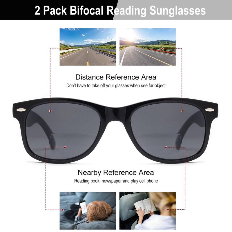 - Perfect for Outdoor Enthusiasts:These reading sunglasses combine bifocal lenses , making them ideal for outdoor activities like fishing, driving, hiking, or gardening. Enjoy clear vision for both reading and distance.
