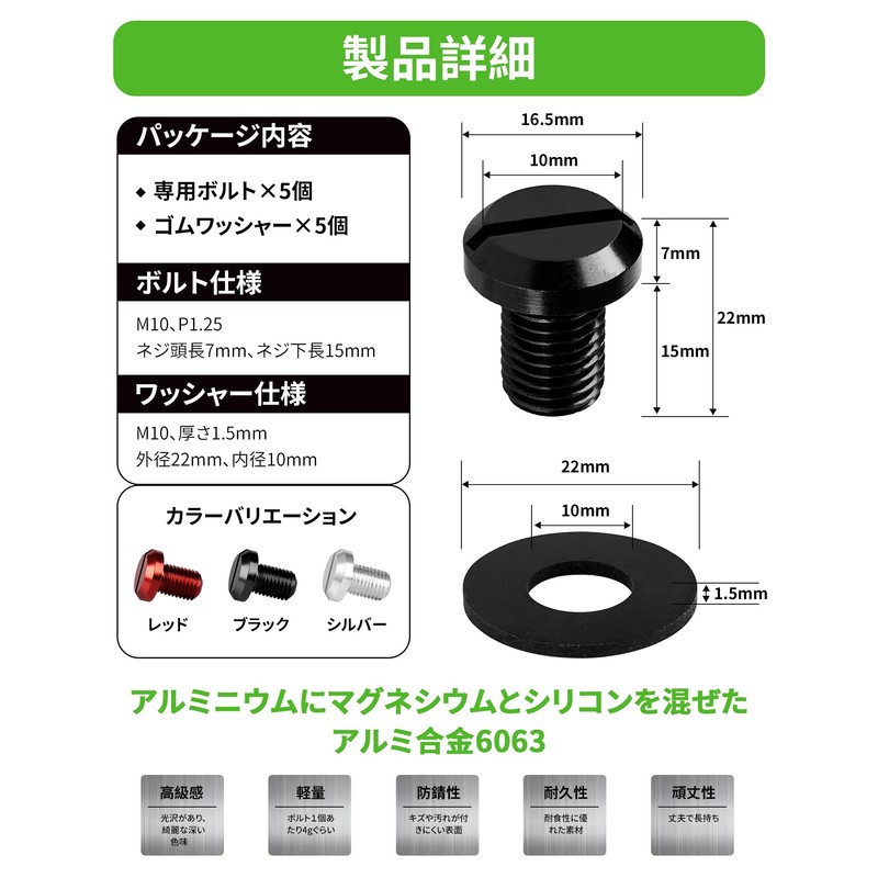 Size: | ネジ頭下長15mm、M10、P1.25 |
