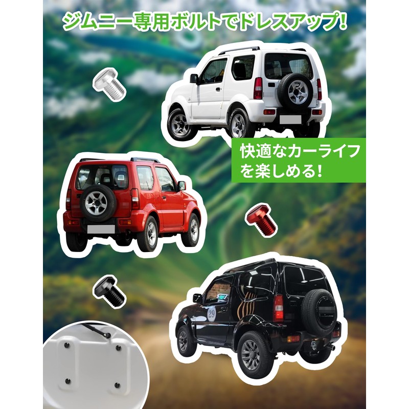 Jimny Bolt, Back Door Bolt, Jimny Dedicated Design, Spare Tireless, Cosmetic Bolt, Tireless, Includes Rubber Washers to Prevent Rust, Jimny jb64 Accessories (Red)