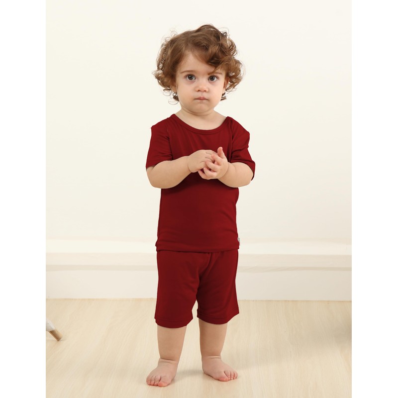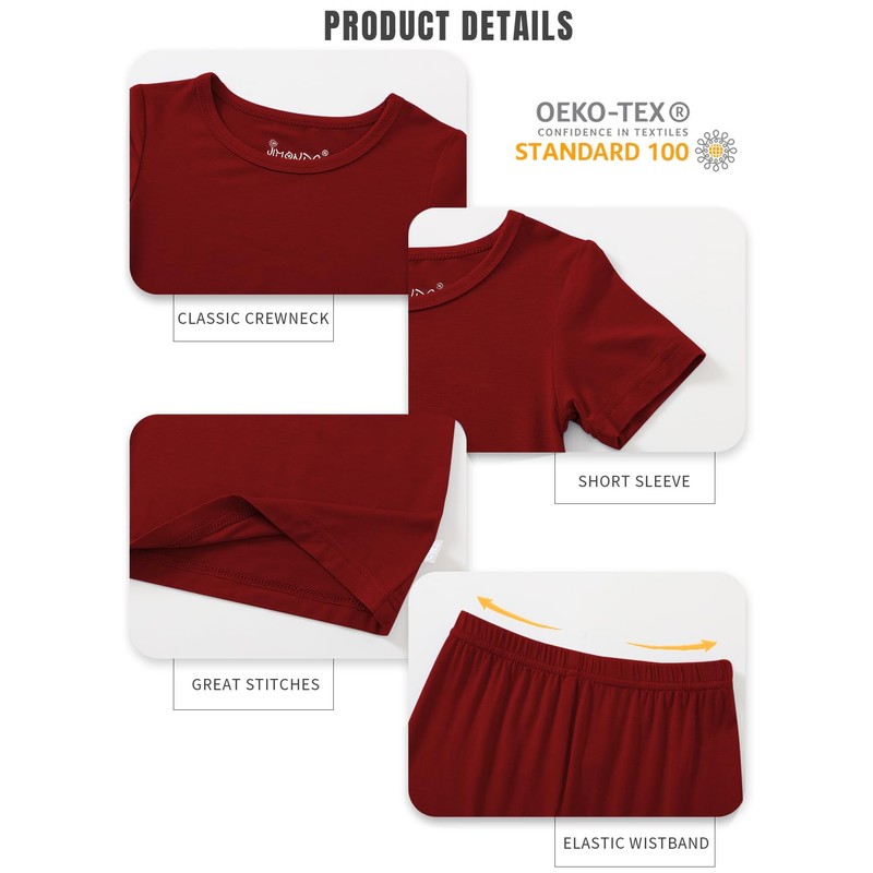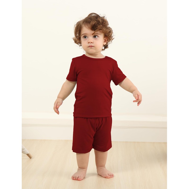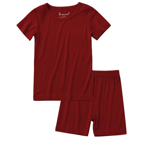 Jimonda Baby Boys Girls Pajama Sets Toddler Sleepwear Cool Jammies 2pcs Viscose from Bamboo PJs Short Sleeved 18M-8Y(Dark Red-2T)