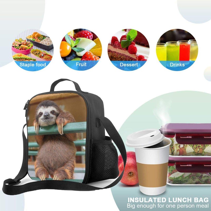 JIMOWANG Sloth Insulated Lunch Bag with Shoulder Strap and Bottle Holder Portable Thermal Lunch Container Bag for School Travel Picnic
