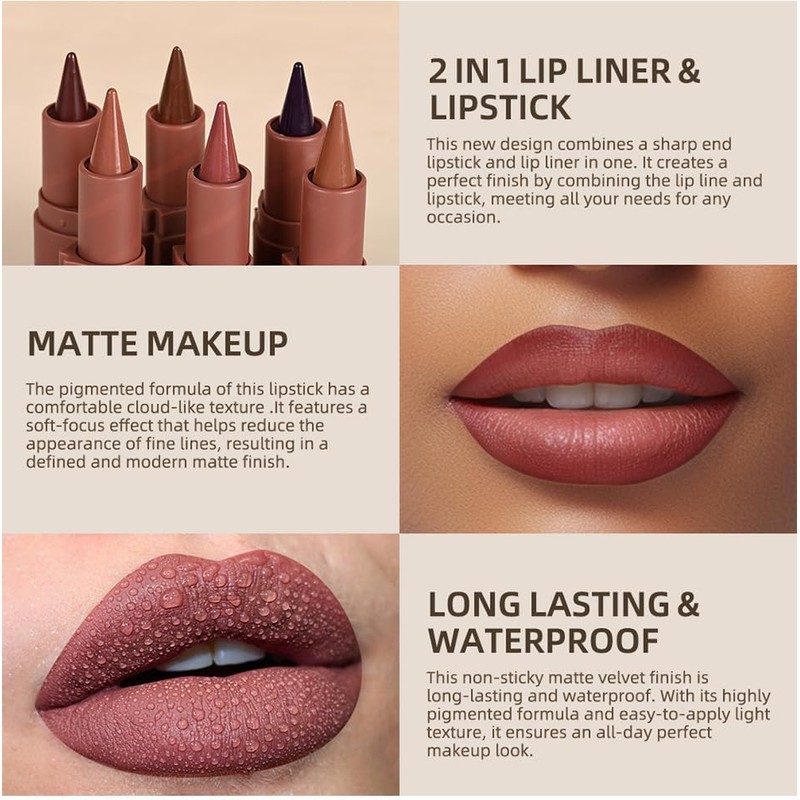 JIMYAUQIN 3Pcs Liner Lipstick, Matte Shades, Precision Tip Applicator, Long-lasting Color (Milky Tea+Caramel+Grapes, 3Pcs)