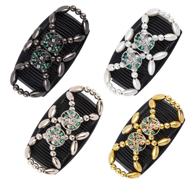 JINBUYAO 4pcs Magic Hair Side Combs for Women Stretch Double Clips Thick Hair Clip Combs Popular Hairstyles Deft Bun Maker Hair Accessories(Big Tree)