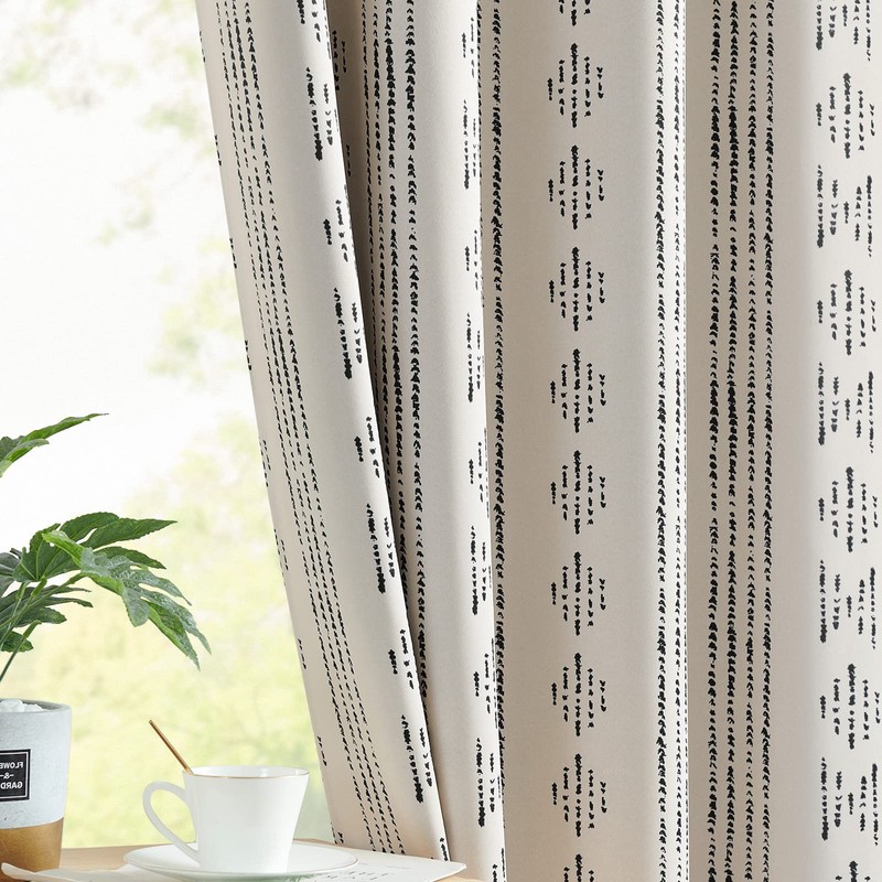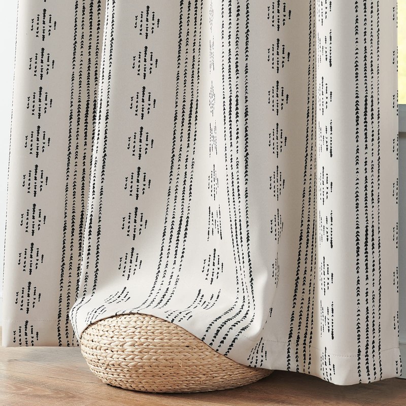 - 100% Blackout Curtains: Add some boho accents in your bedroom begins with JINCHAN printed curtains. Package includes 2 panels in 52 inch wide by 63 inch long each, 104 by 63 combined. A touch of playful modernity mixed texture, these blackout drapes style your home in a modern look.