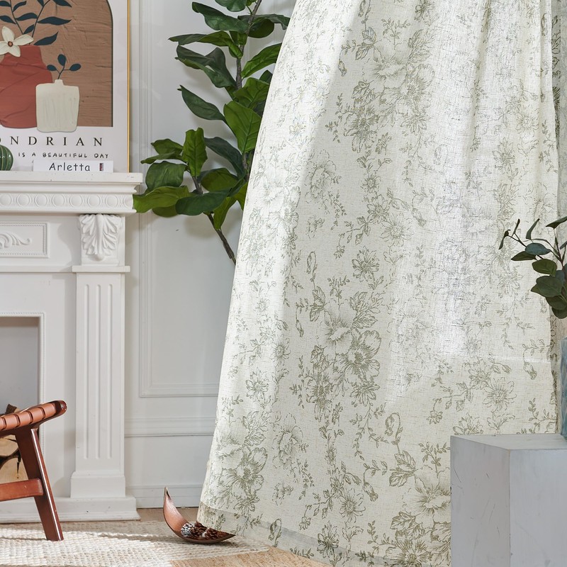 - Light Filtering Flower Curtains: Designed with lovely trims on the edges, these pinch pleated curtain panels strike a balance between functionality and aesthetics, in a soft and hazy effect. They provide sufficient privacy from outsiders while allowing enough light in and keeping indoors bright