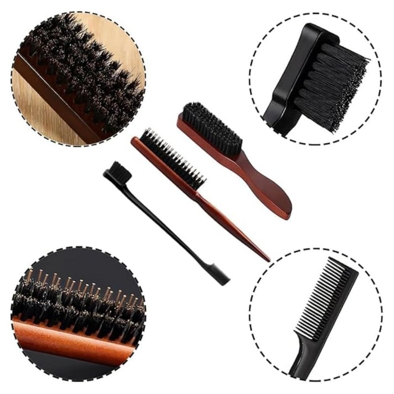 Jindizi Boar Bristle Hair Brush Set, 5pcs - Slick Back, Teasing, Quiff Roller, Anti-Static, Black