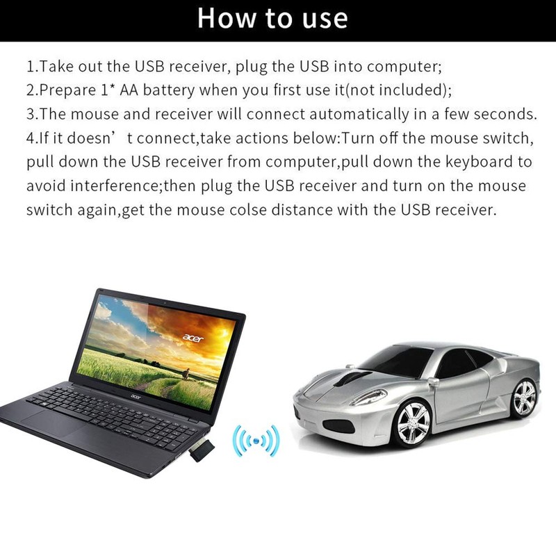 • mouse inalámbrico para coche, diseño deportivo de moda, mouse de juego genial para computadora portátil, buena opción para usar o como regalo para niños, niñas, mujeres y hombres