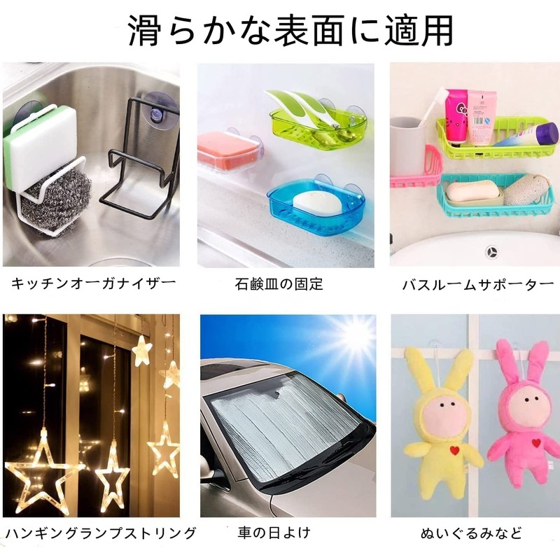 - Suction Cup Size: Approx. 1.8 x 1.8 x 1.2 inches (4.5 x 4.5 x 3.0 cm); High quality PVC material with transparent suction cups, soft and transparent, beautiful and durable. Very elastic,not easy to break,anti-aging. No hook suction cups, clear and beautiful, strong suction, very practical