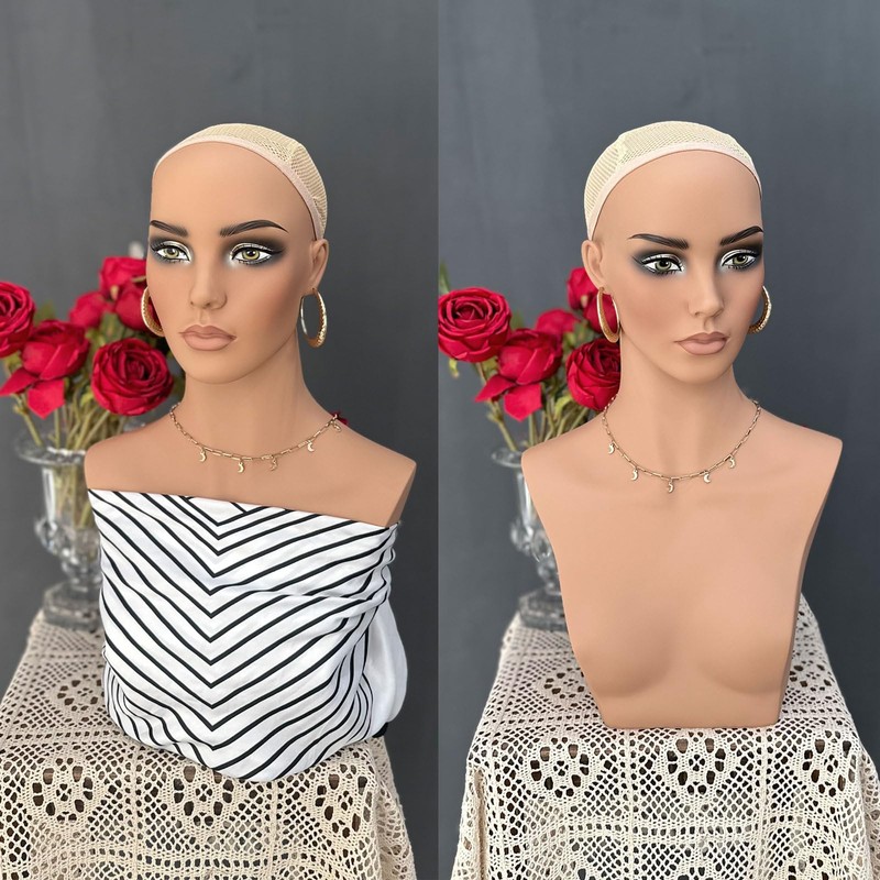 JINGFA Realistic Female Mannequin Head with Shoulders for Wigs Earrings Hats Display,Glam Half Body Mannequin Head Wig Head Stand JF-DP487-YH2