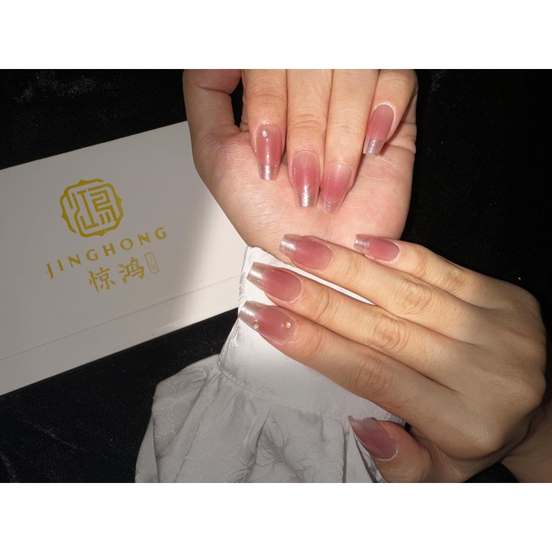 JINGHONG handmade nails,press on nails, french,minimalist,elegance,short coffin,Size-Large