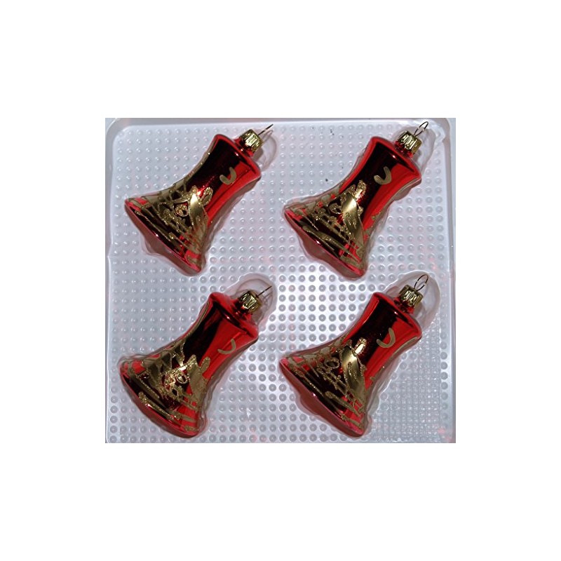 'Jingle Bells Lauscha Christmas Bauble Bell Red Gloss "4stck. per box"