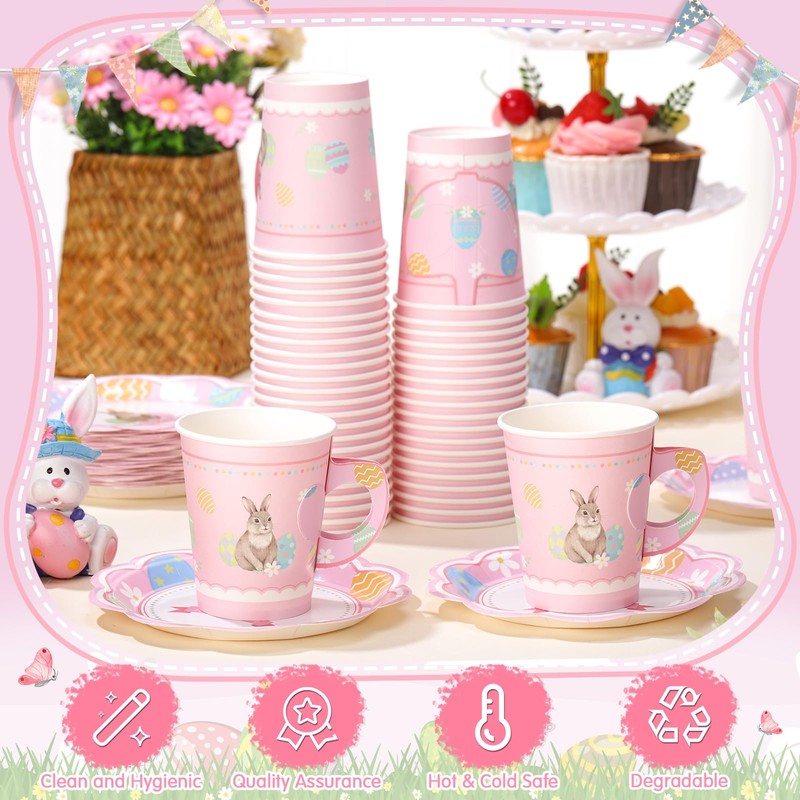 - Generously Packed Easter Party Set: the package includes a whopping 100 pieces of bunny party decorations; It's composed of 50 Easter Bunny themed paper cups and 50 matching plates, making this set ideal for large festive events ranging from Easter celebrations, bunny themed gatherings, to tea parties; This ample supply ensures your guests are well catered to and allows them to immerse themselves in the festive atmosphere completely