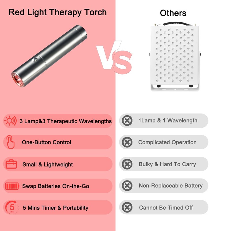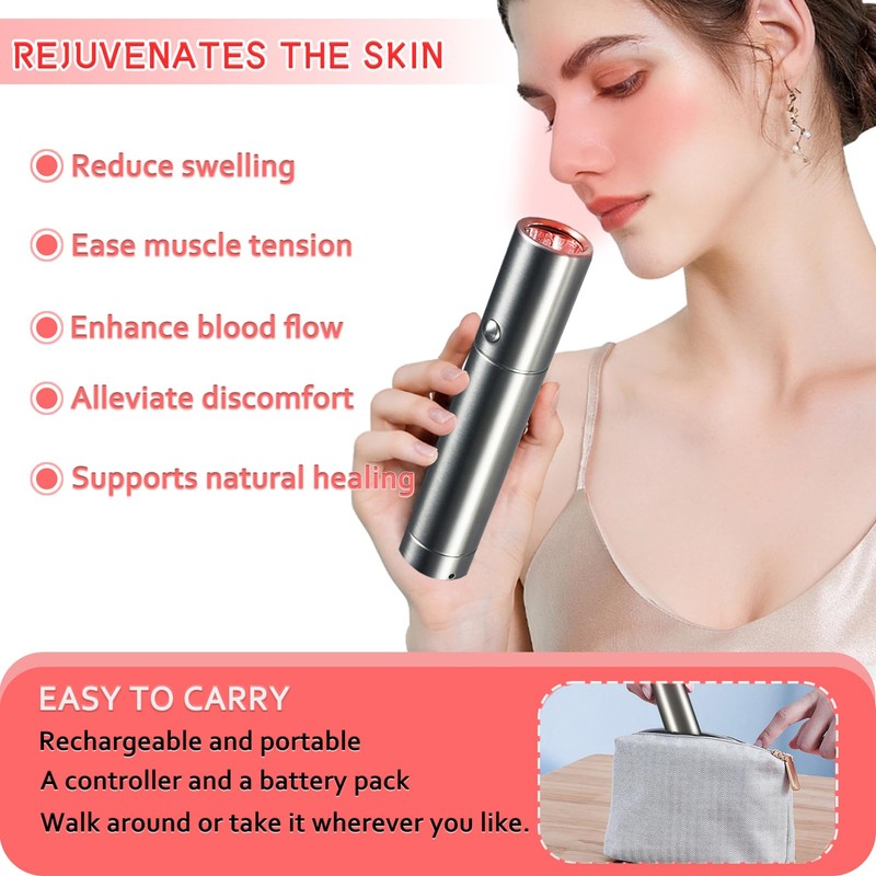 - Easy to use and carry:This handheld infrared light therapy device has a cordless design that makes it easy to carry and use at the push of a button. It also comes with a battery and battery charger, as well as a built-in 5-minute timer