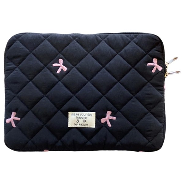 jingyuKJ Puffy Laptop Sleeve Bow Quilted Laptop Carrying Case Puffer Padded Laptop Sleeve Portable Puffy Carrying Laptop Case for Computer 11-15Inch