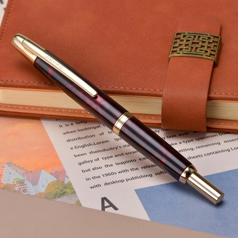 - Elegant Marble Red Finish: The Jinhao 10 Capless Fountain Pen in Marble Red with golden clip offers a pristine, minimalist design with a shimmering metallic lacquer, perfect for those who appreciate pure, refined aesthetics.