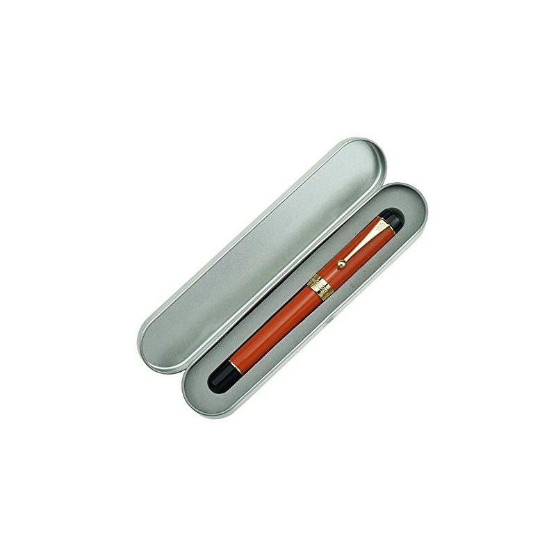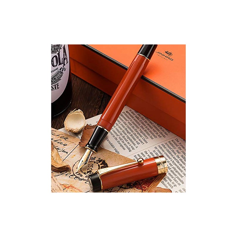 Jinhao 100 Classic Fountain Pen Bentonib, Orange Red Celluloid Brush Feeling Fine to Bold Pen Case Set