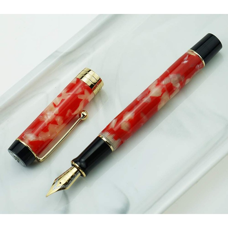 - The acrylic resin celluloid evokes a vintage aesthetic, particularly koi red marble design that appears in this pen