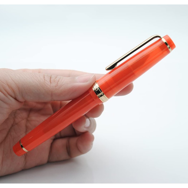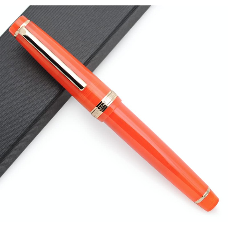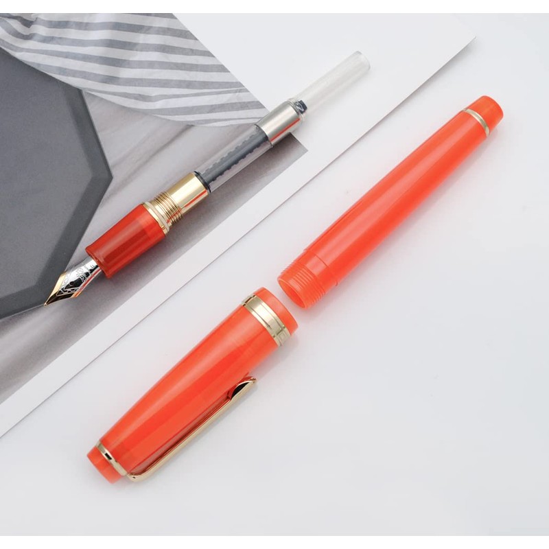 JINHAO 82 Celluloid Fountain Pen Acrylic Ink Pen with Ink Converter (Fine Nib, Gold Clip-Transparent Orange)