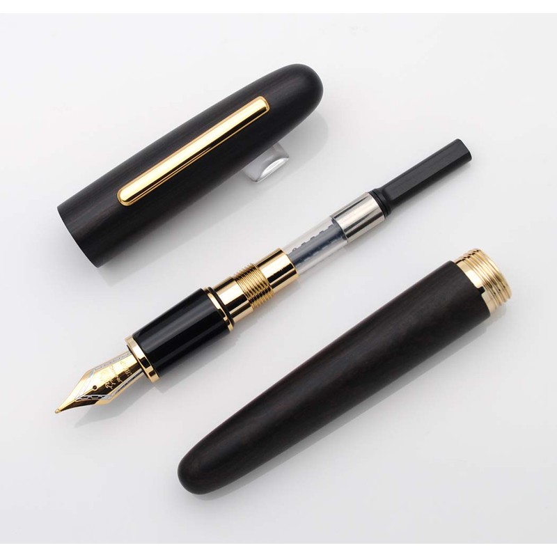 Jinhao 9056 Natural Wood Fountain Pen Handmade Ink Pen (Ebenwood, Medium Nib 0.7 mm)